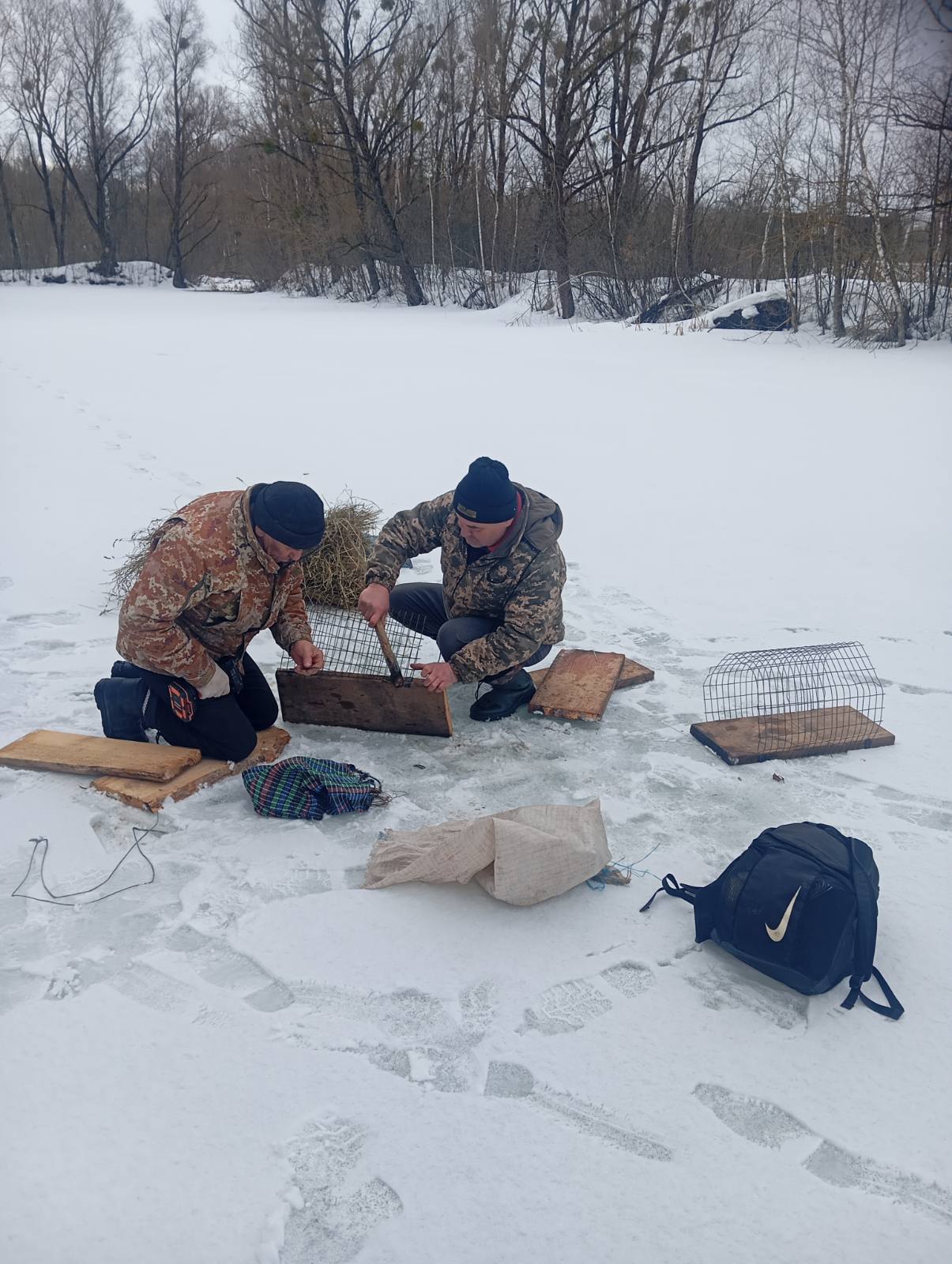 З метою підтримки популяцій водоплавних птахів працівники відділу державної охорони природно-заповідного фонду та природоохоронних науково-дослідних відділень Мезинського НПП проводять практичну роботу з облаштування штучних гніздівель на водоймах.