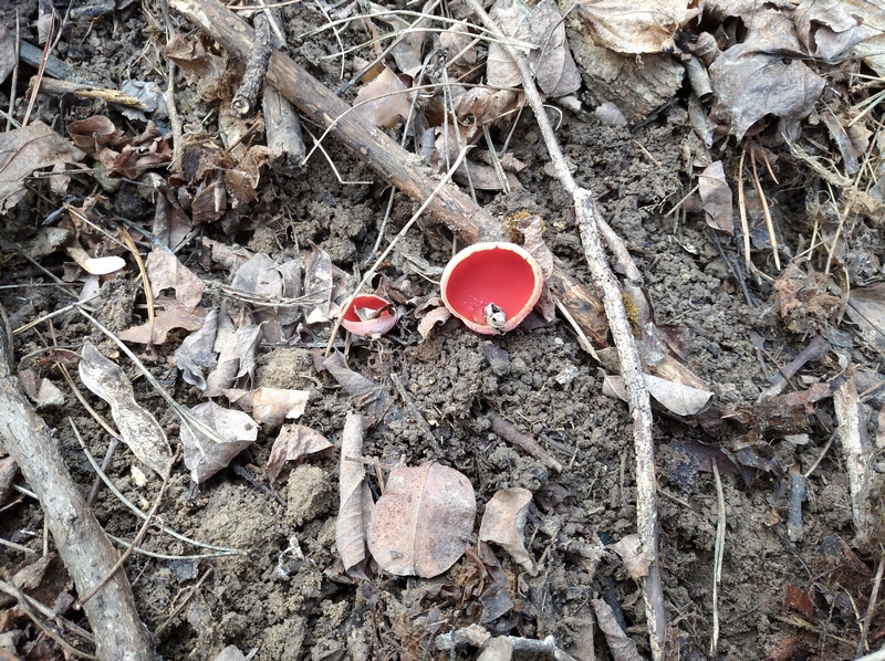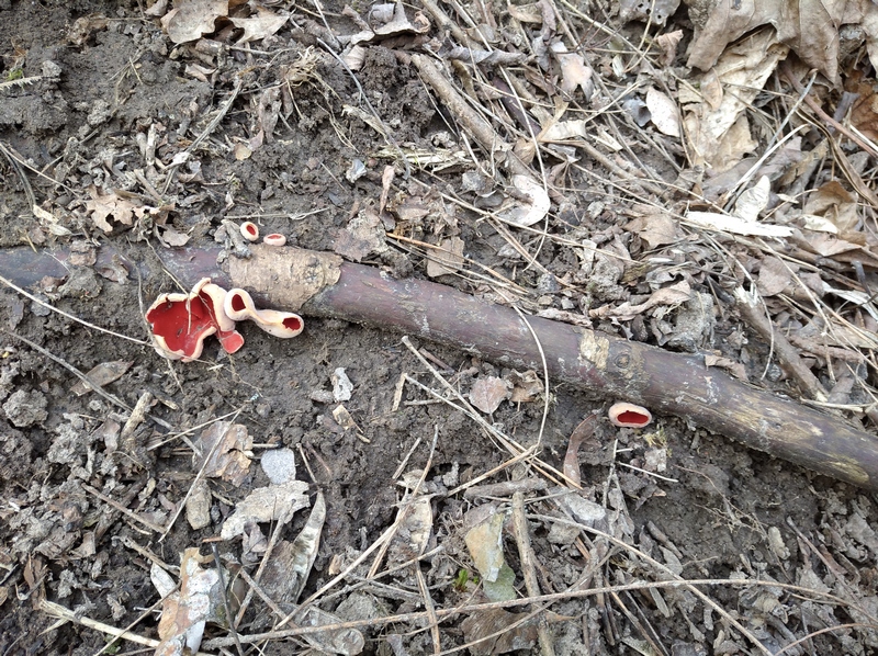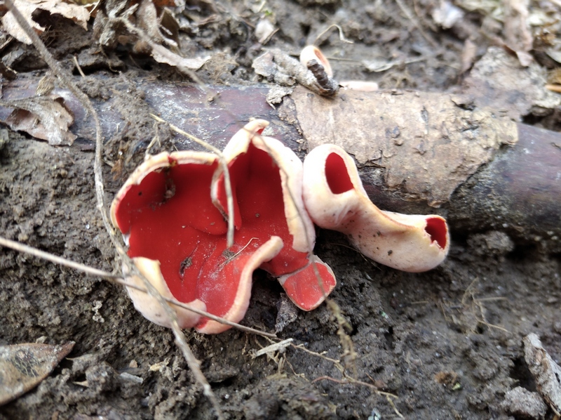 Ці дуже привабливі та незвичні на вигляд гриби, які з’явилися навесні серед опалого листя і нагадують зовнішнім виглядом келишки з вигнутими краями, носять назву Саркосцифа яскраво-червона. Народна назва бабине вушко. Вона швидше від усіх інших видів плодоносить.