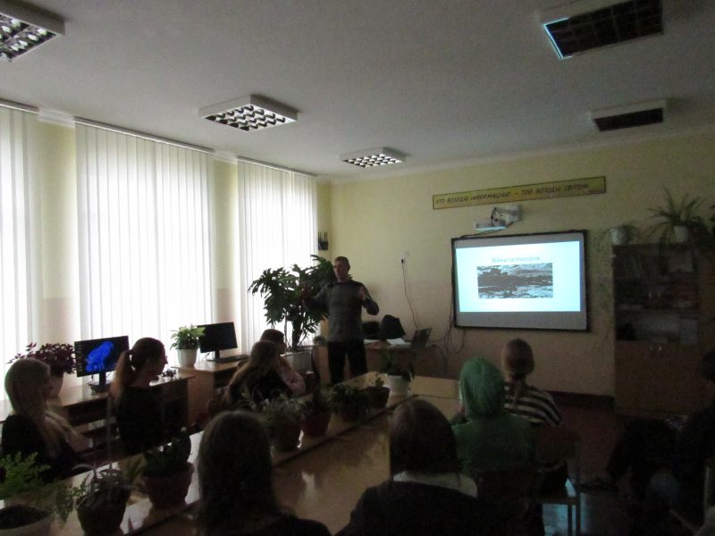 Чергова зустріч працівників Мезинського НПП з учнями 11 класу Понорницького ліцею була присвячена саме цій темі. Під час заходу учні познайомилися з жахливими фактами шкоди, заподіяної російським агресором навколишньому середовищу нашої держави та до яких екологічних наслідків це може призвести в майбутньому.