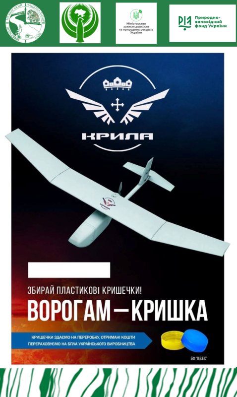 Проєкт передбачає збір пластикових кришечок (чистих, помитих!) від тари харчових продуктів: пляшок для води, молочних продуктів , соусів, тощо. Зібрані кришечки будуть відправлені на переробку, а отримані кошти перераховані на закупівлю БПЛА українського виробництва для підрозділів ЗСУ.