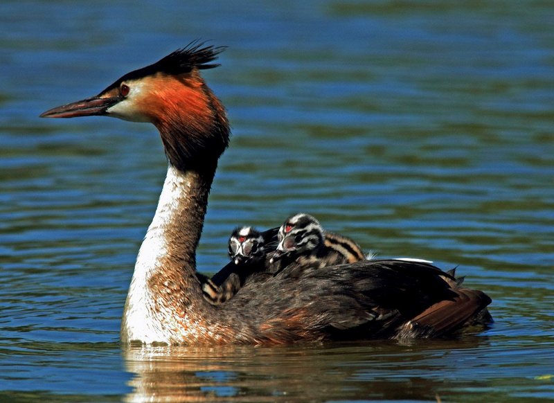 Всі чули про шлюбні танці журавлів (але мало хто їх бачив), а от про шлюбні танці великих норців знають небагато. Ці ігри відбуваються на воді і є дуже незвичайними та ритуалізованими завдяки чіткій послідовності поз, які синхронно демонструють птахи. Вони пливуть одне до одного, пір’я комірця розпущене, птахи трясуть головами і спливаются впритул. Потім встають у воді вертикально, в «позу пінгвіна», тримаючи в дзьобі пучки водоростей і пропонують один одному як подарунок. До речі, пташенята плавають на своїй мамі, як на кораблі, ховаючись в пір’ї на спині. При чому мама, навіть пірнає з ними.