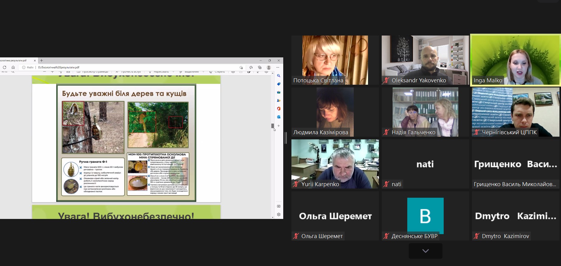 Виступи колег з природоохоронних установ (Голосійський НПП, РЛП «Кременчуцькі плавні», дендропарку «Криворудський», «Софіївка», «Олександрія»), науковців і освітян з Київського національного університету імені Тараса Шевченка, Національного університету «Києво-Могилянська академія», Хмельницького національного університету, Національного університету «Чернігівський колегіум» імені Т.Г. Шевченка, були присвячені актуальним та наболілим в сучасних умовах питанням і проблемам еколого-освітньої діяльності та рекреації у умовах воєнного стану.